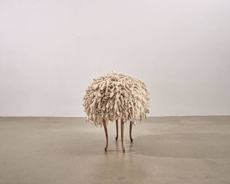 In 1999 I made a wall hanging with a horizontal baroque wooden frame. I took it from a so-called kitsch couch. The leftover legs were standing against each other in my studio. I saw a sheep in them. The Museum of Natural History in Leiden had asked me to make an exhibition on three floors of their n...