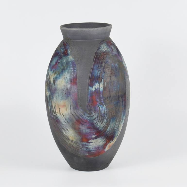 Large Oval 13.5 inches Raku Fired Ceramic Pottery Vase S/N0000531 Sculpture