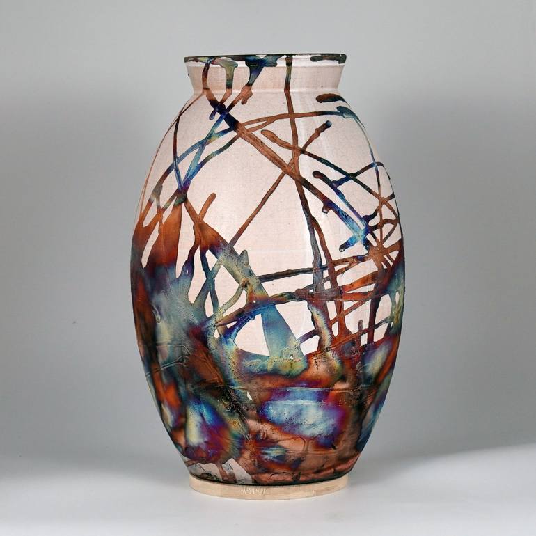 Large Oval XL 14 inch Raku Fired Ceramic Pottery Vase S/N0000658 Sculpture