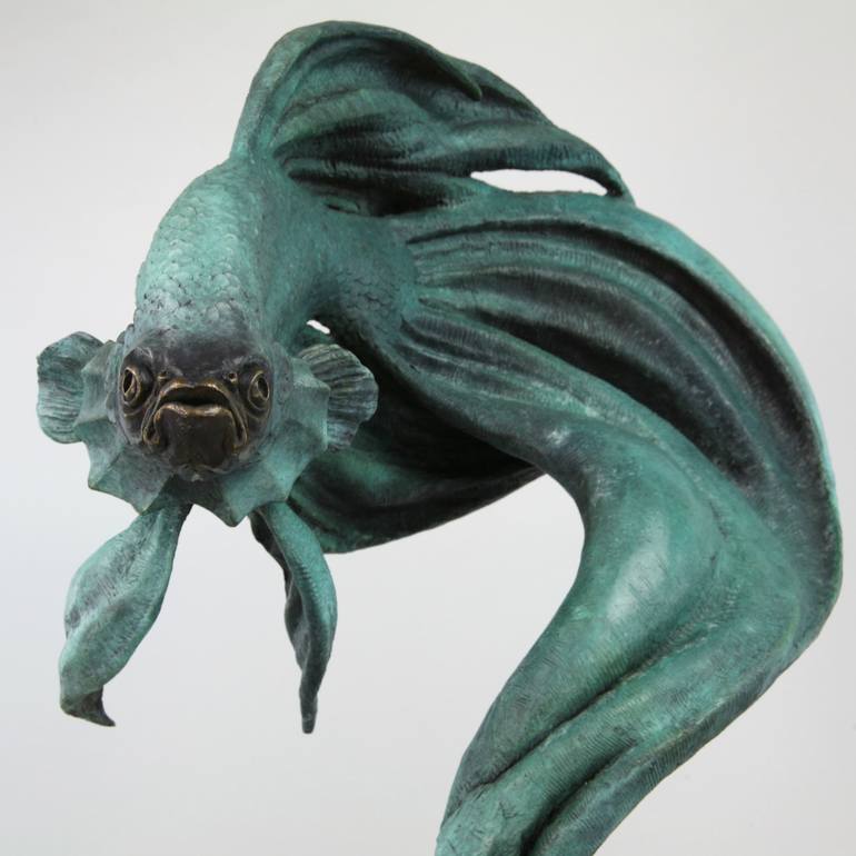 Large Siamese Fighting Fish, 2020, bronze, H:74 W:50 L:50 (cm) limited edition of 8. Sculpture inspired by "Pla Kad" (from Thai literally - biting fish) King of Thailand Rama III licensed and collected these in XIX century. Siamese Fighting Fish are known for their aggressive and territorial behav...