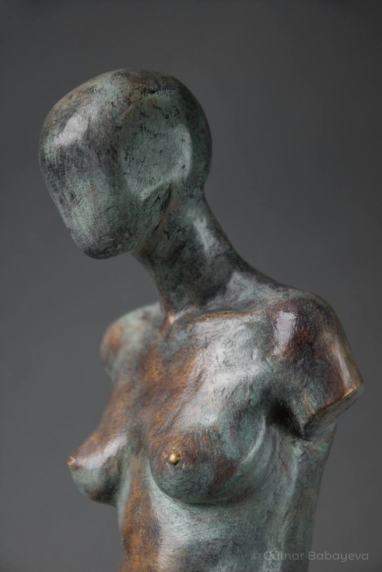 SOLD // In private collection, Hudson Valley, NY Description: Female torso fragment with abstracted head // In private collection, Hudson Valley, NY Sculpted from observation of a live model in 2017 // Completed with a patina application in 2020 // Displayed on a black base