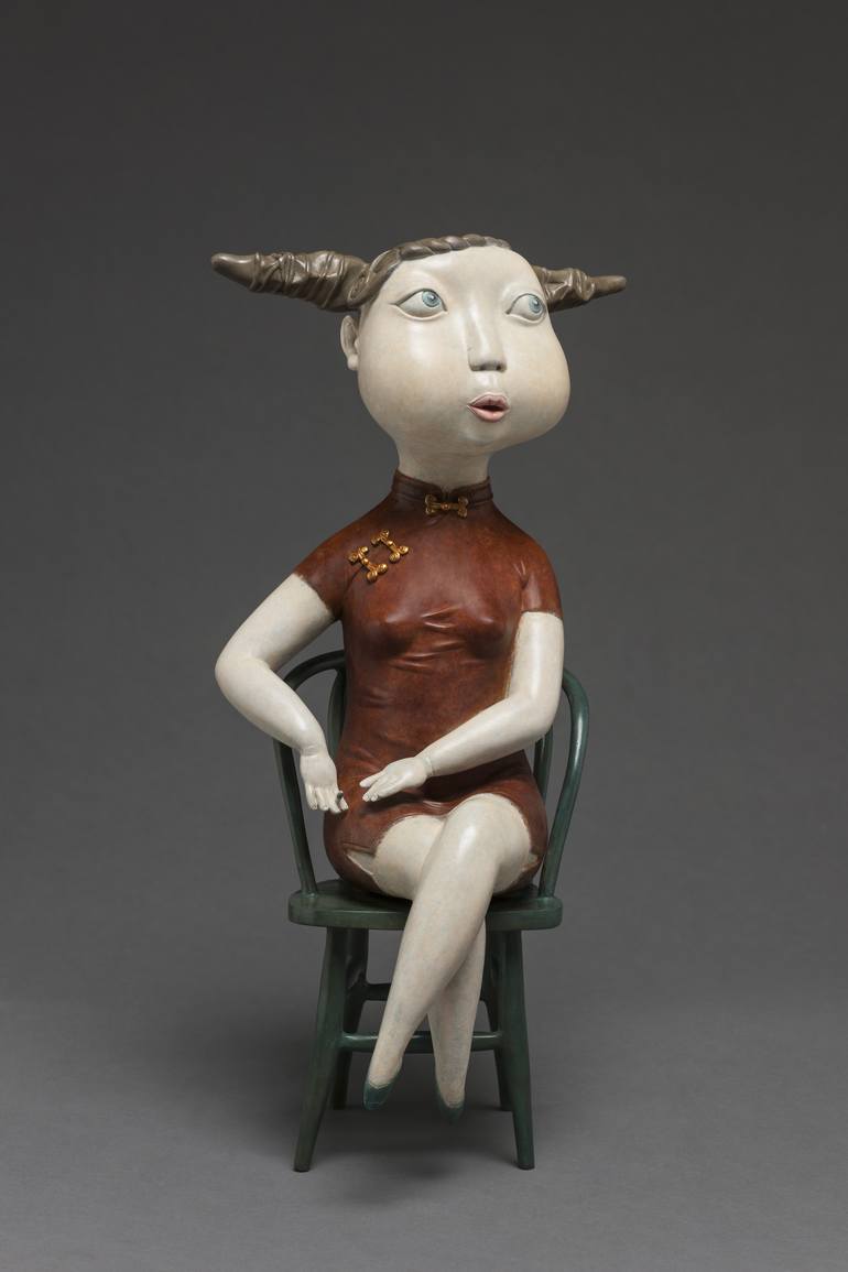The artist portrayed the "Shanghai Women" in China in the 1950s and 1960s. Clad in Chinese cheongsam, they were thoughtful, laid-back and charming. Created out of bronze and through thermal coloring, this series of works are very mild-colored and fadeless. Since they are completely free from the sin...