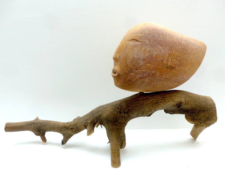 This hand carved sculpture is made of cypresswood (head) lightly painted and fixed on a branche of olivetree. We lived for 2 years in Tuscany then in Haute Provence, Bretagne, Herault, Centre/France, Aveyron and now in the departement of Creuse ." Working together with my wife Marie-Pierre , I am a...