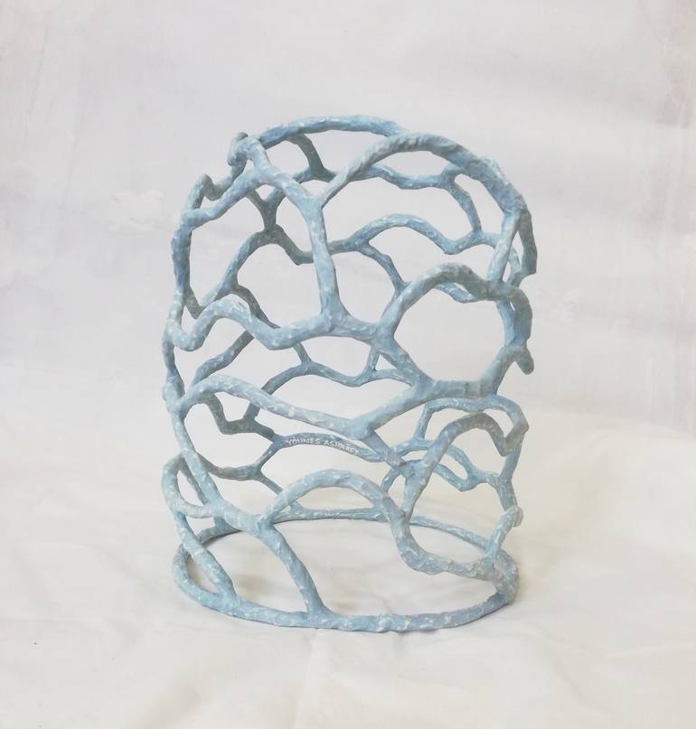 Lonely cage This is a light volume of paper. Its structure is made of metal wire. It is covered with paper and has a light blue acrylic color. After painting, its protrusions are softened with sandpaper. The special feature of this work of art is that you can put it on another work of art and create...