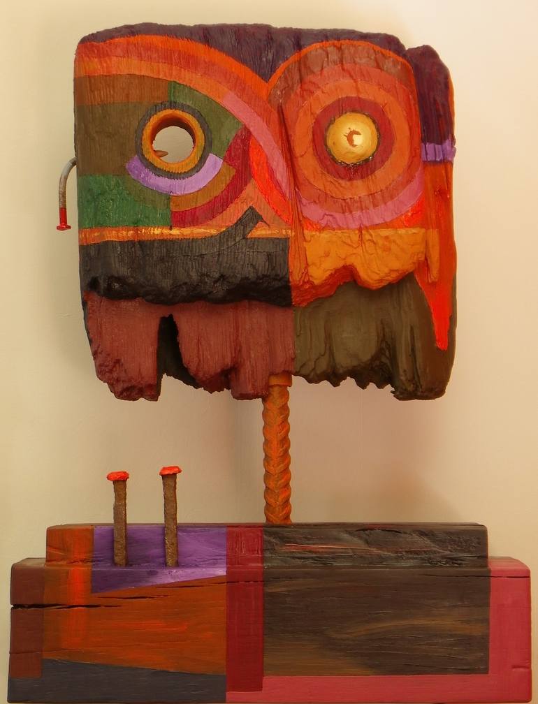 'Look to Sea' sculpture 2014 oil paint, on driftwood, metal, & oak base Inspired by a visit, with my parents, to the Cornish town of Charlestown UK, its historical harbor, often used in movies, known for it's tall wooden masted sailing ships,
