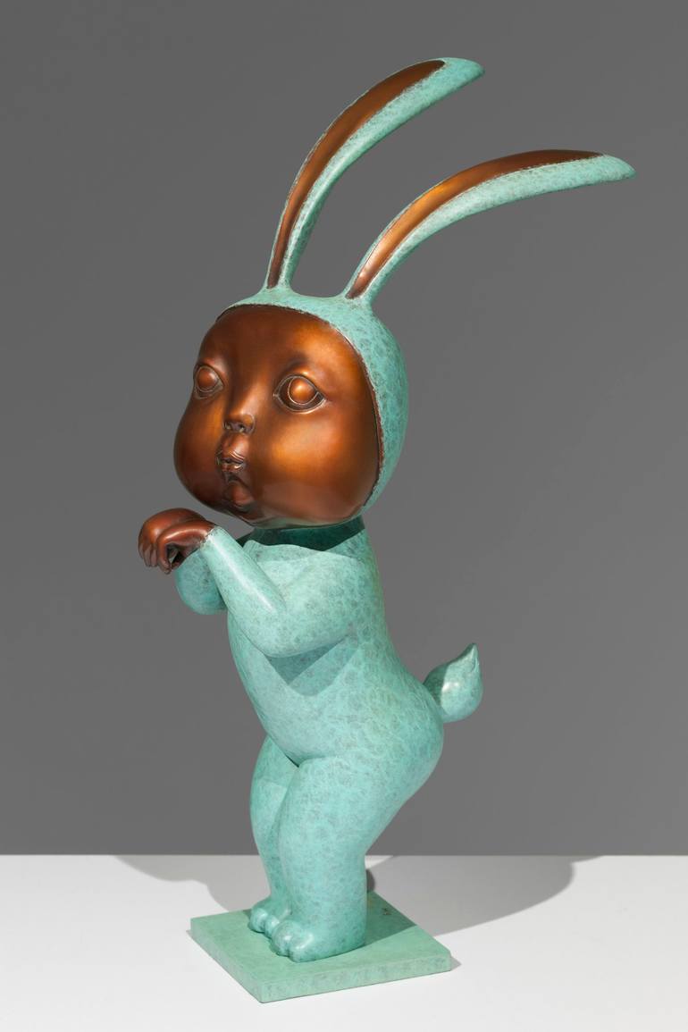 The rabbit girl continues the artist's highly recognizable classic IP image. She has a round and plump face, a flat forehead with gentle lines, and her pursed small mouth looks as if she is deep in thought, presenting a serious and adorable appearance that makes people can't help but feel fond of he...