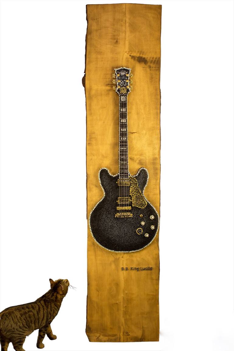 Experience the awe-inspiring tribute to the legendary B.B. King and his iconic guitar, Lucille. This extraordinary sculpture showcases a meticulously crafted, life-size replica of the renowned guitar, entirely made from screws on a solid timber canvas measuring 2 meters in height. Only one copy of ...