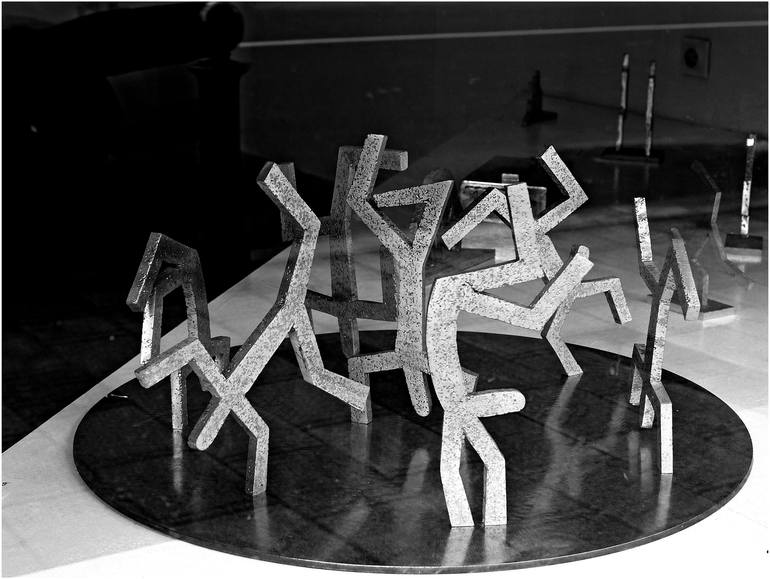 … However, movement is also possible, but only as a kind of (dangerous) acrobatic game – figures presented in free movement, they try to free themselves from petrified attachments to space and their own givens in it. The seven figures in the circle, caught trying to make a standing position or a br...
