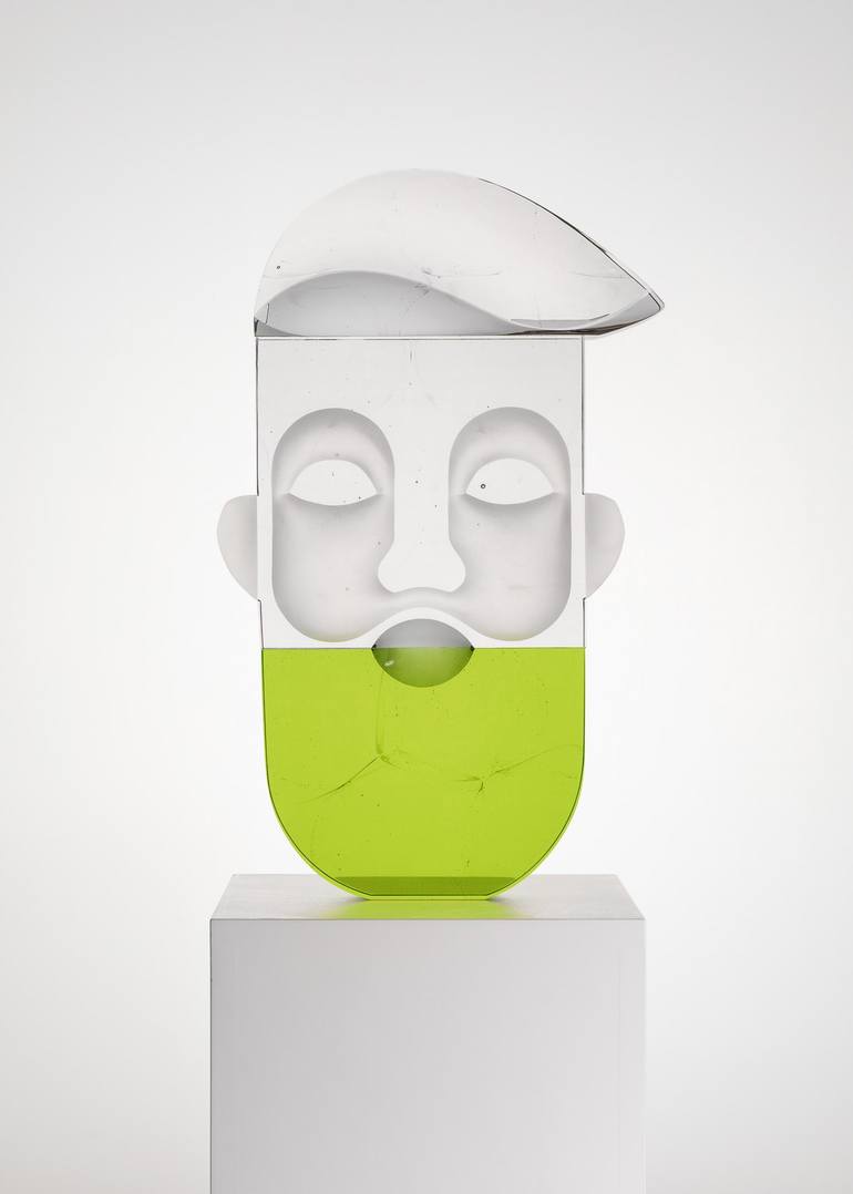 I got the idea for this object while looking at photos of African indigenous masks. I picked up a pencil and drew such a prototype of a modern European-looking man. For a few days, I tuned the shapes and devised a procedure for sanding and gluing it all together. I bought the glass in Ornela and ...
