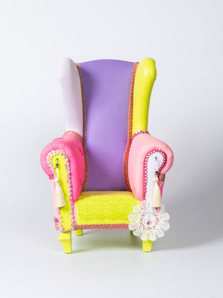 Guiomar Gamero is a highly trained Visual Artist. For forty years, she has been the Creative Director of her company "La Fiesta Coordinada", with which she has created nationally and internationally) installations of different scales, with scenographies in which the world of furniture, objects, and flora transcend the functional and pleasant and gradually begins to shape the plastic problem of her work. Her plastic activity revolves around the mixing of materials and various objects, always with an emphasis on furniture, objects, and color planes. Her work combines different scales to create artistic scenographies, where the abstraction of the utilitarian element is the protagonist alongside primary, vibrant, and invasive colors. In this way, Gamero takes us on a journey with her works through multiple situations that characterize contemporary art, such as appropriation and repetition, in combination with different techniques of expression, from the most traditional such as drawing, painting, collage and embossing, to the latest digital techniques: computer, tablet, photography, giclee, and museum prints with fine art pigments. Gamero's work is framed within Pop Art with the difference that there are no faces or figures: the human element is suggested by indispensable objects of her daily life that contrast with large color planes."