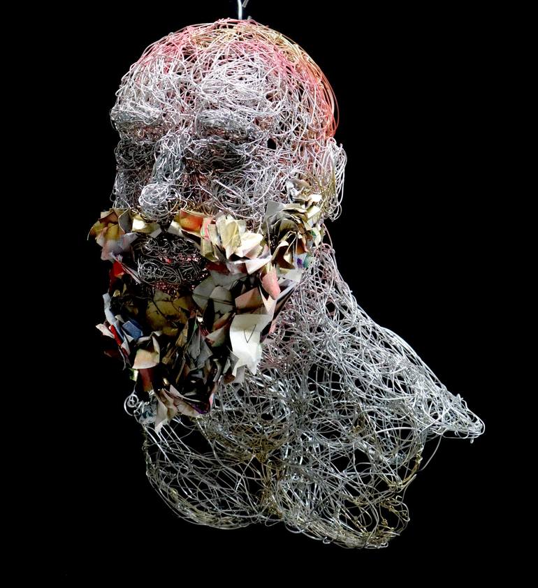 MODERNO is hand woven sculpture with galvanized steel wire and paper. The subject is inspired by ancient Greek sculptures seen on Yunus Chkirate's last trip to London. Yunus plays with the contrast of hard steel and the fragility of paper to create his 3D portraits.