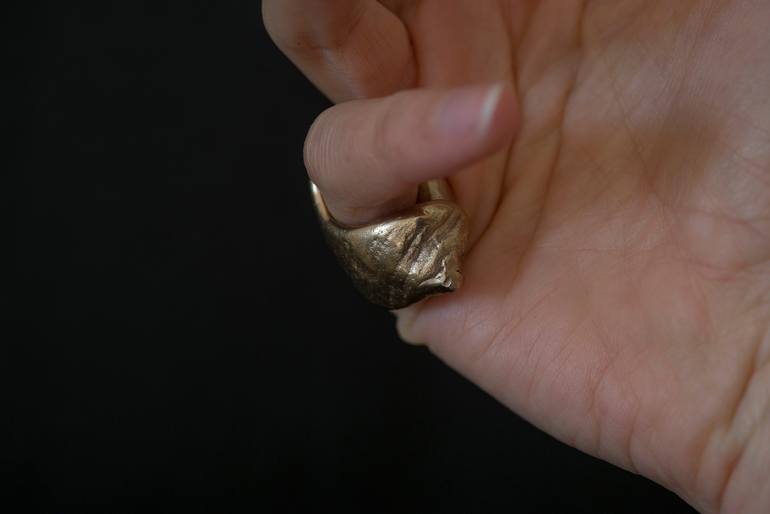 Ring-Pendant MER-CRYSTAL Collection — wild-crafted and designed by nature — NY05 / seashell bronze - Ring-Pendant cast in natural bronze. Right hand. One size 45-46 mm - Manual finishing process. Each piece a single character - On leather (suede) strap black. Length adjustable. - Made to order Y...