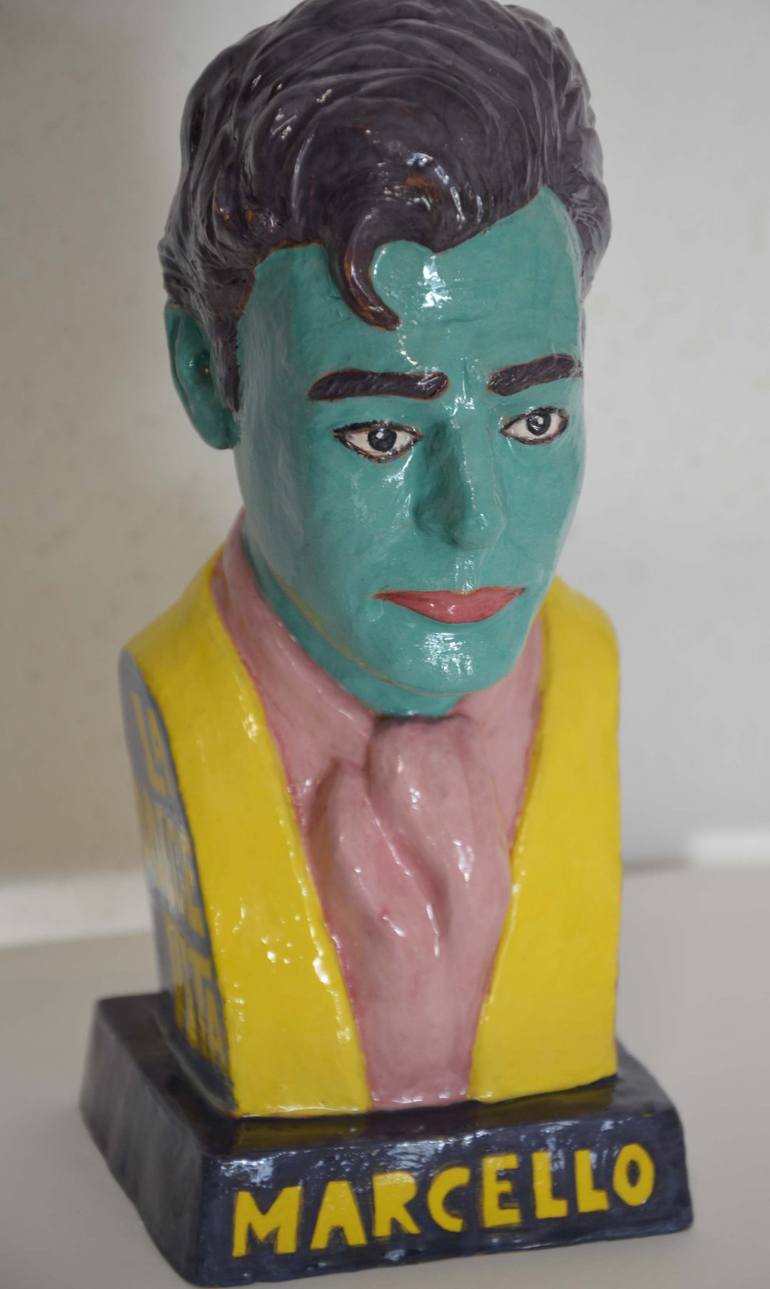 It is a small glazed terracotta bust, which I call Parvuli Hermae, which represents the well-known Italian actor, very famous for the films of director Federico Fellini, his alter ego.