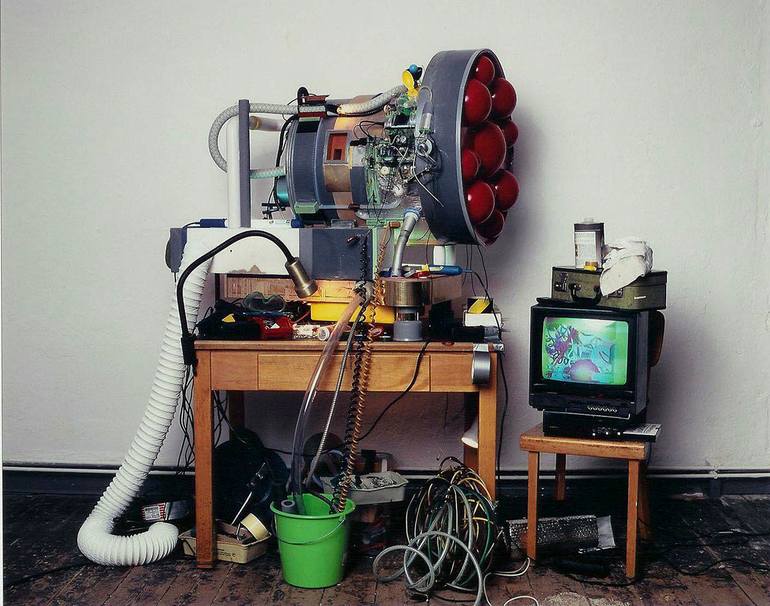 Tobias Regensburger's fantastic world manifests itself in a variety of forms. His room-dominating installations, machine-like sculptures, objects reminiscent of furniture, constructions made from small parts and futuristic drawings are characterized by unconstrained creativity. The basic materials used for his technological visions can be found in everyday situations; things that are taken out of their normal context and integrated into new sensory relationships. Born 1966 in Göttingen. Lives and works in Hamburg. He studied sculpture at Muthesiushochschule Kiel, 1987-94. Es was co-founder of gallery Prima Kunst, Kiel 1989. He received several grants, e.g. from Künstlerhauses Lauenburg/Elbe 1997, Kulturstiftung Stormarn 2000, he received the country's art prize of BBK Schleswig-Holstein the same year. In 2004 he got the stipend fromBiehler-von Dorrer-Stiftung, Munich and the working stipend Kunstfonds Bonn in 2005. In 2011 he received the public award of the Municipal Gallery Kiel. His works can be found in public and private collections all over Europe.