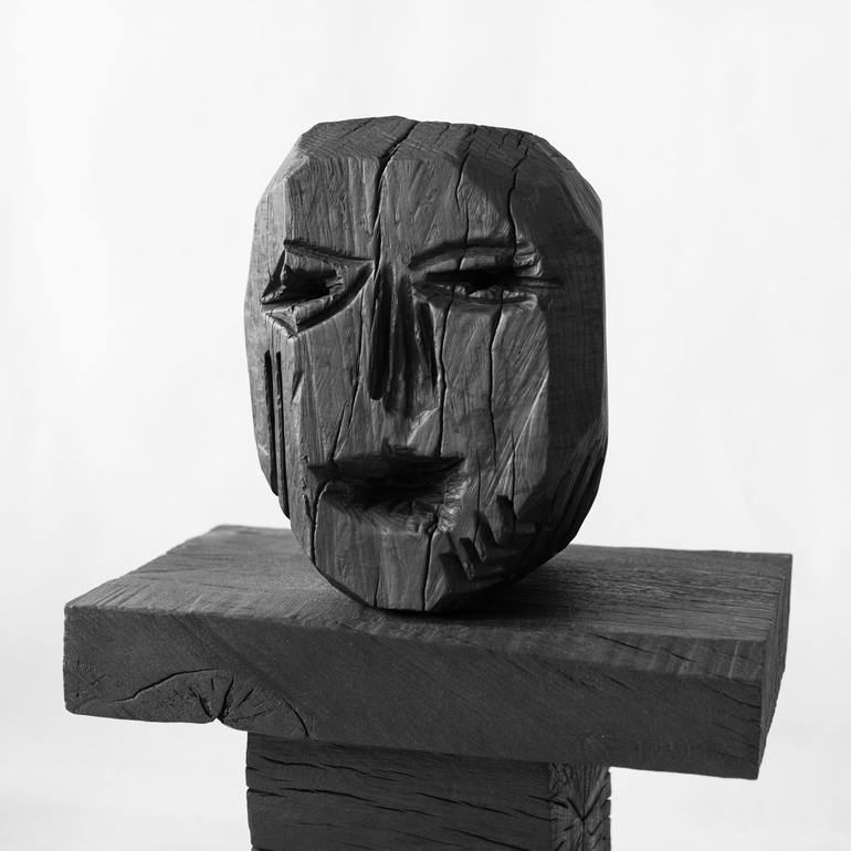 Pretending to be a human Ros Khavro, 2021 Modern oak wood sculpture Big Head Dimensions: height: 45cm, width: 35cm, length: 29cm Weight: 17kg