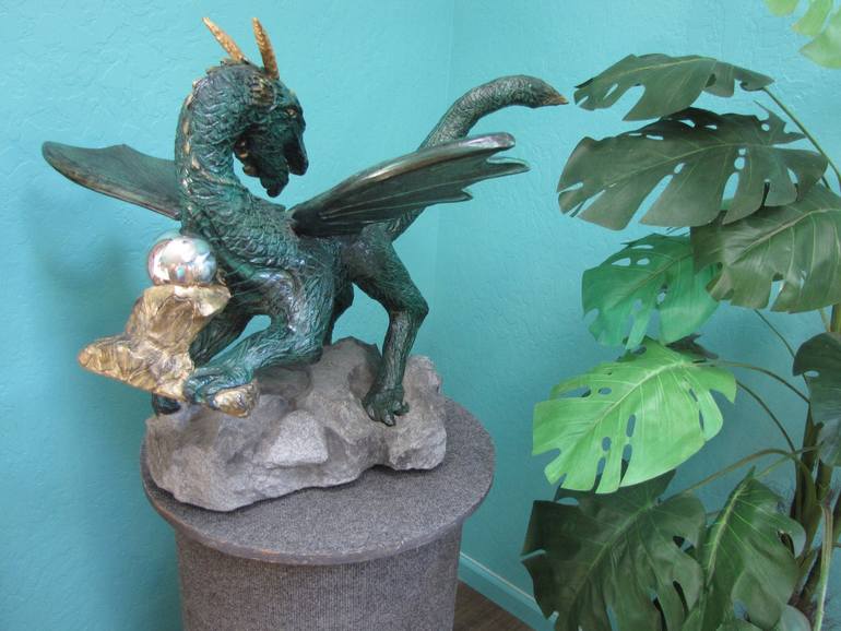 All my work is for indoor display only signed/copyrighted hand carved Dragon sculpture in alder wood, stainless steel ball, granite textured base I have always loved the Medieval era so decided to carve a really neat Dragon. This piece has a story behind it.. .Notice the stainless steel poli...