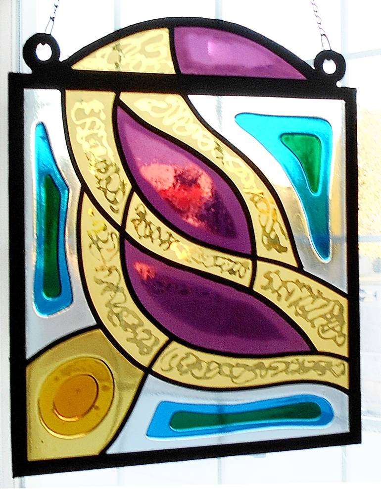 Sculpted with glass, painted with light. The evolving design of this hanging window medallion, features layers of hand made stained glass, fused at high temperature to form glass jewels. The kinetic beauty of glass and light are enhanced by the fascinating effects of sandblast etching. Assembled...