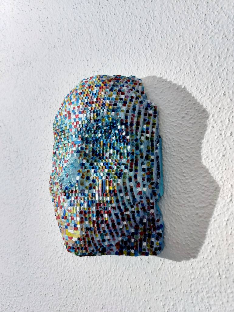 This piece explores the theme of metamorphosis, where form dissolves and re-emerges through texture and color. The fragmented surface, reminiscent of pixelation, blurs the boundary between the digital and the physical, symbolizing transformation and impermanence. The interplay of light and shadow e...
