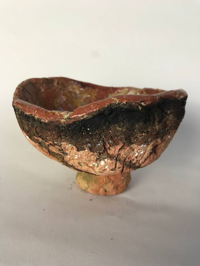 Ciotola scultura in terracotta, trattata con sabbia, ghiaia e ossidi. L'opera vuole rappresentare il gesto istintivo, primitivo che rievoca ricordi ancestrali. La materia diventa mezzo espressivo, fatto di texture e colori unici.