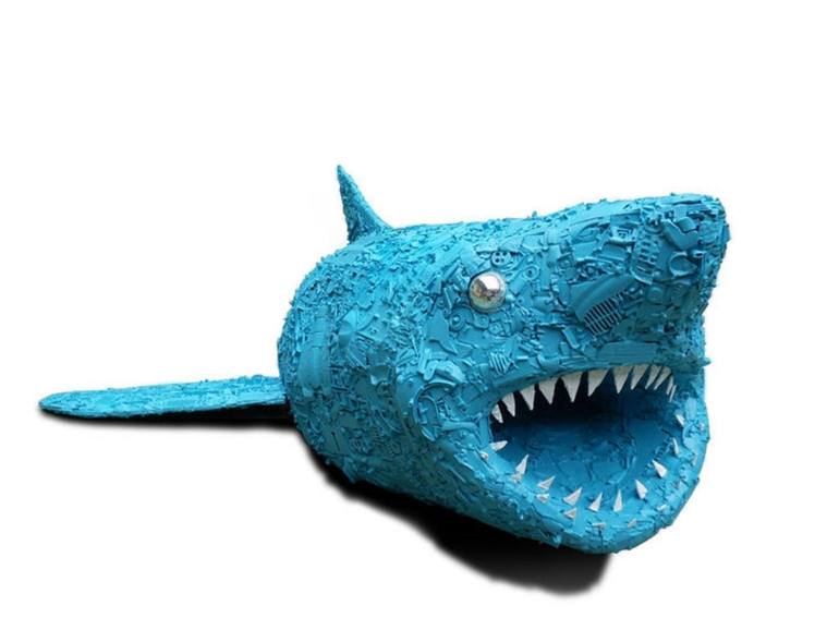 I materials is the plastic, the current objects of the daily life are broken, twisted, cut, reduits in small ends which I gather to create sorts of gearings, the whole is strengthened with the resin and sometimes painted.