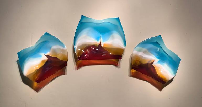 Willsea-O'Brien Glass is a husband and wife team working together since 1983. We are glassblowers who took years of fine craftsmanship in a direction of painting and sculpture. Interesting mistakes became a point of departure from traditional functional forms to asymmetrical groupings for wall mounting or single deeper oblong forms well proportioned to tabletop.