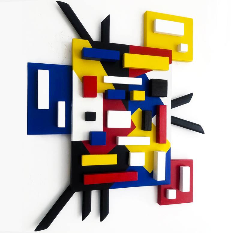 3D Woodcut on wood and canvas, Mondrian style inspired. NOTE: this particular artwork is no longer available, but a new work, unique and original and in the same style, can be commissioned by interested collectors. Contact me for sketches and photos of the new original work