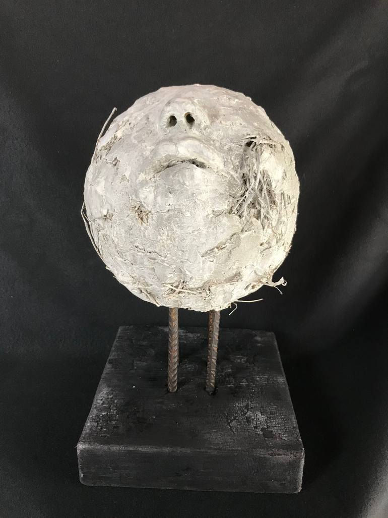 Scultura in terra cruda, paglia, legno e altro materiale vegetale. L'opera è montata su base in legno e tondini di acciao, la finitura della base è eseguita con tecnica di carbonizzazione del legno. Il sogno e la realtà si intrecciano, la luna che si trasforma in volto e ci interroga sul mistero del...