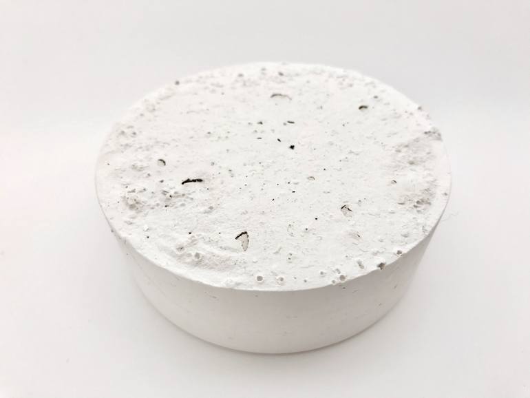 Moonstone 16 is white with small black particles embedded in the plaster. The Moonstones were made by pouring plaster into different sized molds. I imagined the surface of the moon, the colors there and how the wind is blowing strongly. The plaster had to dry for several weeks and is white and smoot...
