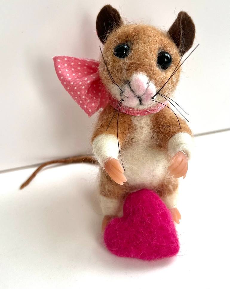 A needle-felted mouse heart Valentine would make a super adorable, handmade gift for Valentine's Day! The idea would combine the charm of a cute little mouse with the love and warmth of a heart, perfect for the occasion I used my favorite medium - wool to create Lucy. I put a pink with small polka ...