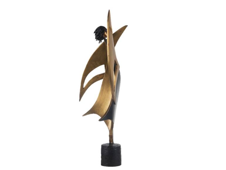 The sun-setting solitude slowly turning a velvety night a fine goddess now descending concealing all her might. This bronze sculpture is the night vision of the flight beyond dreams.