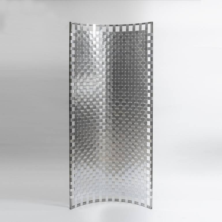My interest in art has led me to experience with people, ideas and materials. In my works, the mesh is not just the conjunction of metal strips, but becomes an experimentation of complicity: visions and gestures that intersect and become matter. I mainly use recycled aluminum, which I have chosen for its ecological characteristics but also for its sensuality, plasticity of linear and curved shapes, its brilliance that reflects the world, its contrasts: resistant but delicate, cold but leading heat. With my works I play with light: an atmosphere that becomes reflection on things and their way of being.