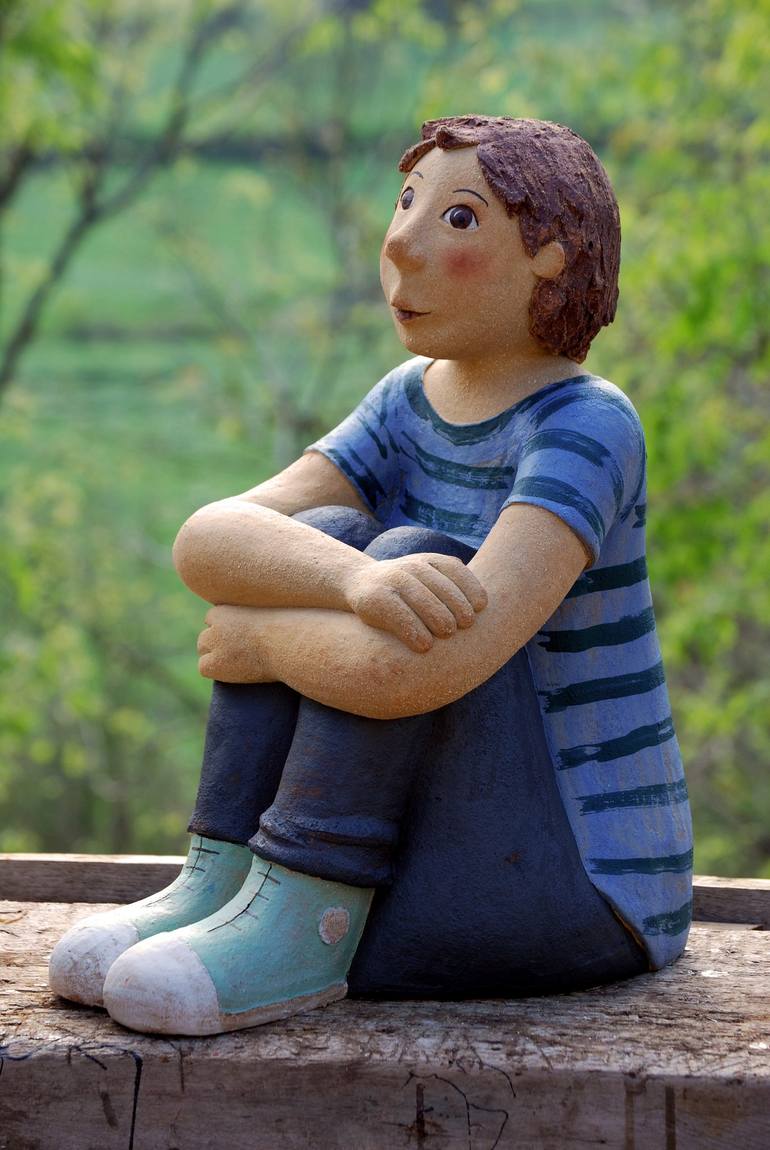 MY WORK IS DONE IN REFRACTORY CLAY, FIGURES FIRED AT 1270 DEGREES CENTIGRADE, DECORATED WITH ENGOBE AND CLAYS OF VARIOUS TYPES, ALWAYS GIVING A FRIENDLY, HAPPY AND SYMPATHETIC TOUCH. THIS FIGURES ARE MADE TO ACCOMPANY YOU IN YOUR MOMENTS OF TRANQUILITY AT HOME, THE TERRACE OR THE GARDEN. THE MEASUR...