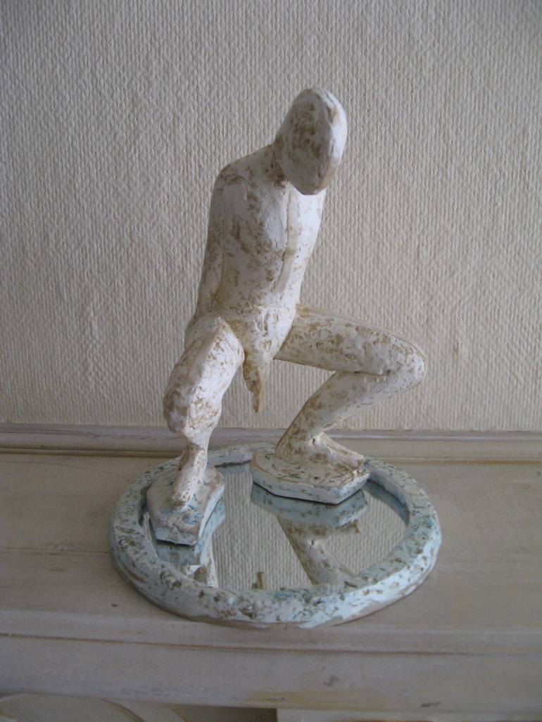 small sculpture representing Narcisse lokking at his image