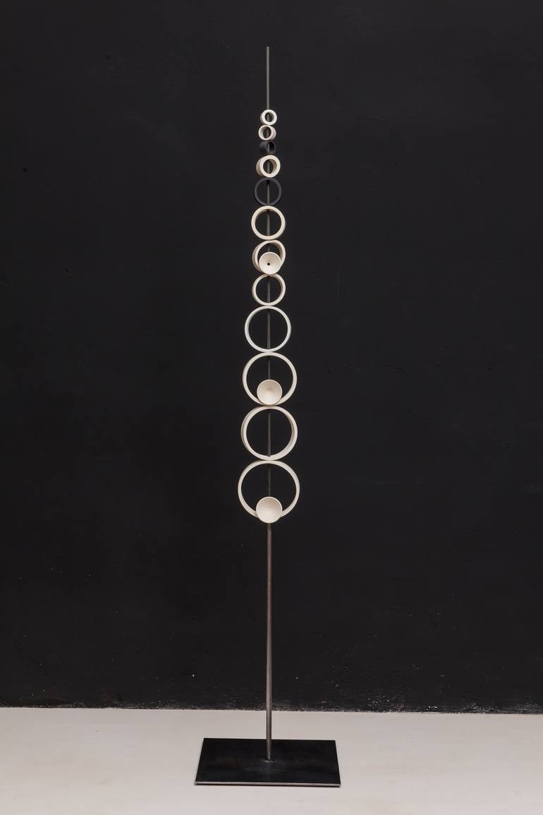 It is a series of works made of white stoneware and black porcelain. The series of sculptures "Necklaces" are combinations of deformed or geometric organic rings, made of black porcelain and white stoneware. Made with the lathe technique, they are cut cylindrical pieces, circular or oval, and other ...