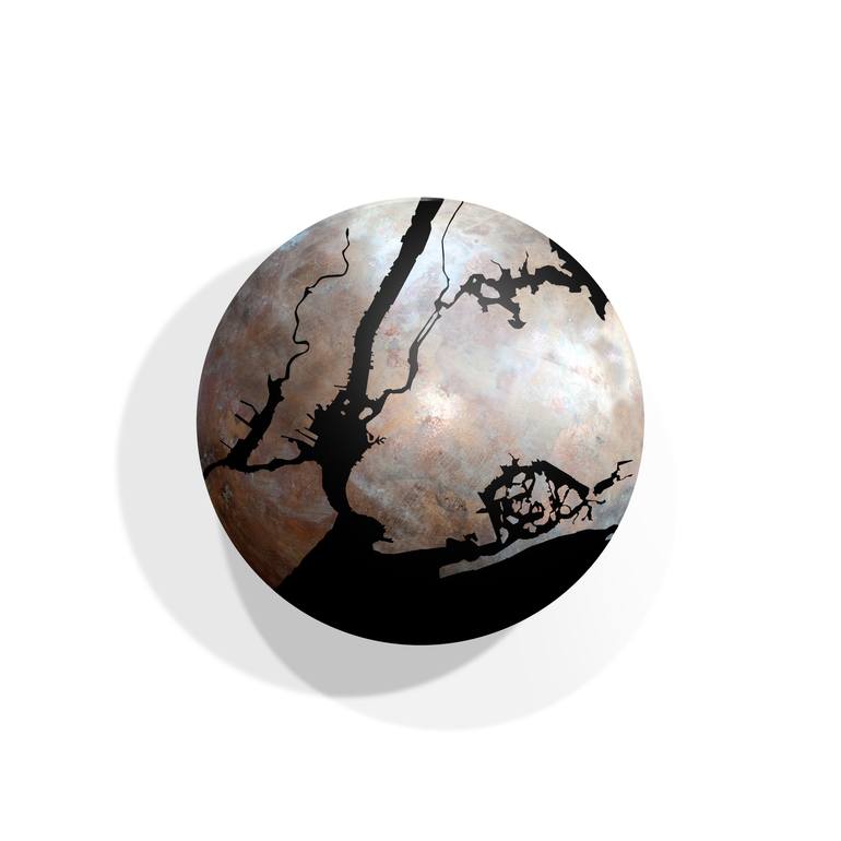 These artworks are both abstract and familiar. By removing labels and boarders from my maps the landforms become abstract shapes. This gives you the opportunity to view familiar landscapes in their purest form. These pieces are made with Gilded Cooper onto a matte painted mild steel hemisphere. Eac...