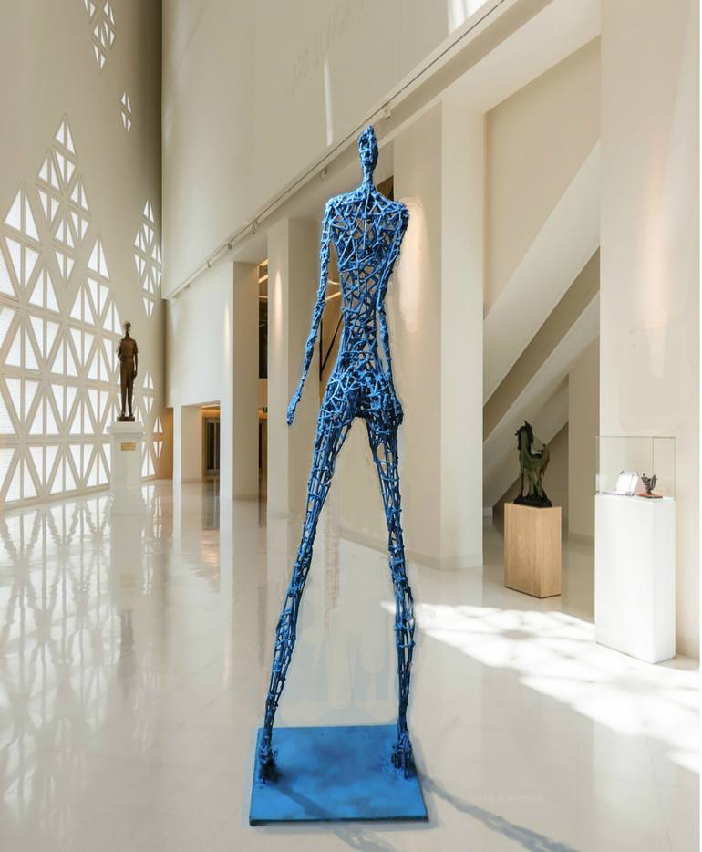 "New Frontiers" is part of the sculpture cycle "condensation and material disintegration" in this case with star woman. These sculptures are made by assembling about 1500 pieces of metal of different shape and size and about 3000 welds. Colored with transparent paint, blue paint and blue pigment pow...