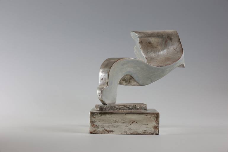 This work is created in wood, the surface is painted and gilded with silver leaf. The inspiration for the title "Nonsense" came from the thought of the lightness and playfulness of the form. The smooth painted and gilded surface has a dull soft patina, partially oxidized. The patina can change it`s ...