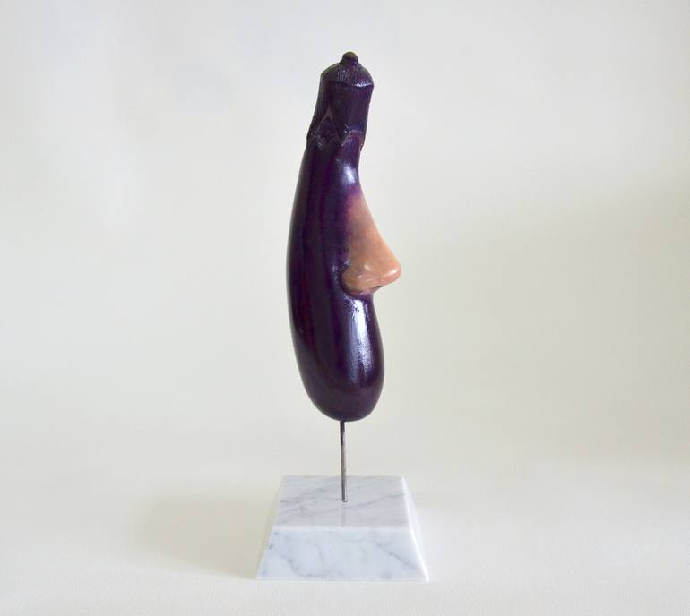I'm interested in how our brain work and feel through our body. This time I try to combine vegetable(an eggplant) and sensory organs like nose.