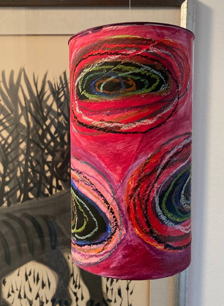 Howard Hodgkin, Cy Twombly, Alexander Calder and Phyllida Barlow were artists that inspired me to create this work. I want the viewer to feel the power of the blast . I chose a cardboard container with a plastic lid becuaseof the lightweight qualities and mobility. Hanging hardware is included.