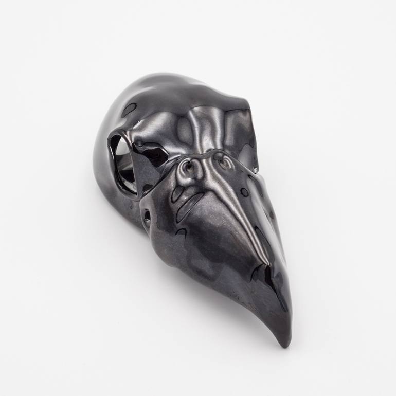 Mortality, power, strength and wisdom. This bird skull is inspired by the mythology of Odin´s ravens. It symbolizes a deeper meaning of life, valuable courage, with the power to rise again after any trouble that might destabilize their balance. A handmade, one of a kind, self designed glass skull...
