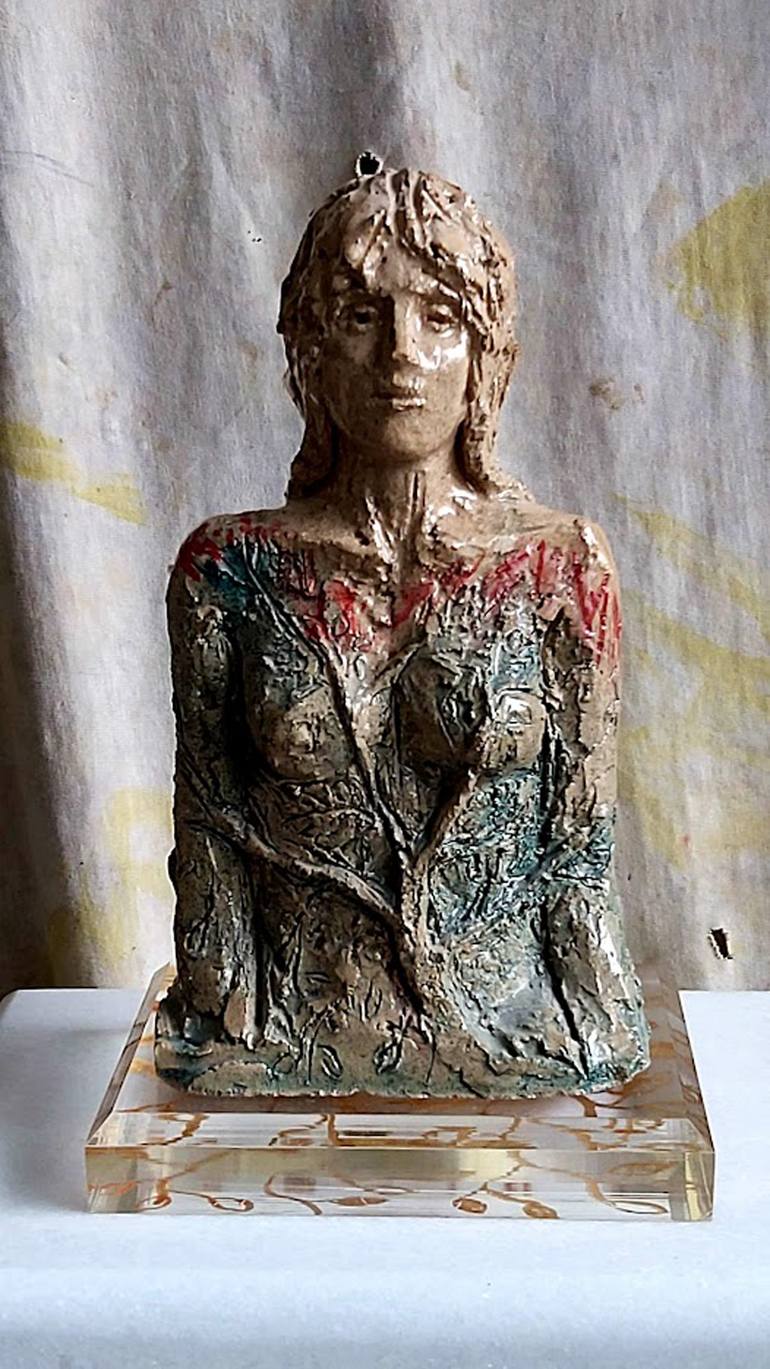 The sculptural synthesis is based on two characters ,one from the myth of Apollo and Dafni and the other from Ofeliia the character from Shakespear's play "Hamlet". My Ofelia is pictured trapped and motionless but still alive ,a fact that makes tragedy still taking place. The use of colour in the g...