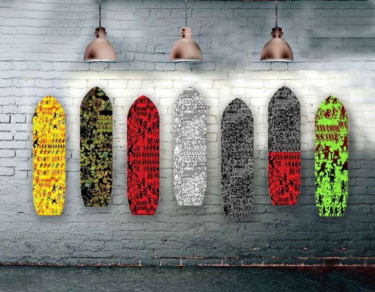 7 Skateboard Handmade limited edition 5/5 worldwide This Oldschool skateboard is the IV series 2021 by the artist Skaynah, inspired by his works fine art, entitled: Total Chaos Exhibited at the SwissArtExpo Zurich 3.0 / Artbox Project 2021 The new gloss finish introduced in this year's collection....