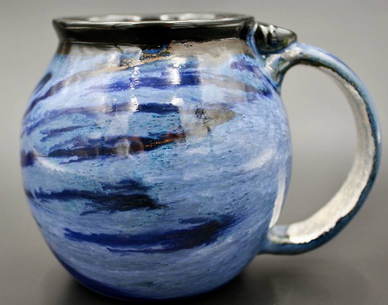 This "Neptune Mug" has tiny accents of 24 karat gold inside, fired into the glaze during the 2280 degrees F. kiln firing. It also has 99.99% pure silver accents on the inside curve of the handle, added with a "gilding" technique after the kiln firing, then covered with a non-toxic, food safe epoxy. ...