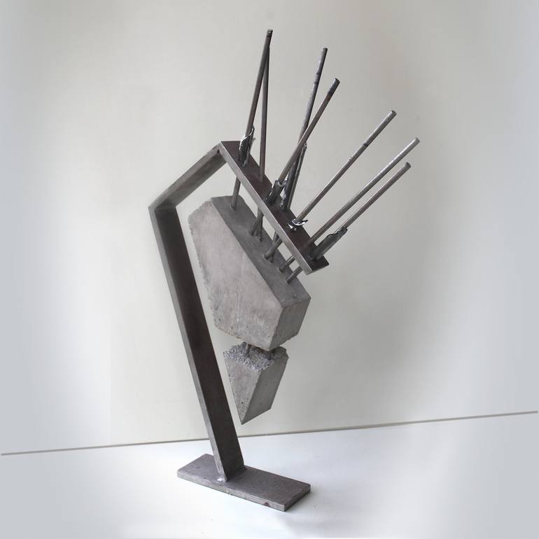 When designing this sculpture I was exploring form and balanced supporting structures. Inspired by architecture and structural engineering I strive to invent structures never before seen. The steel rods are placed through holes in the top steel plate then the concrete is formed over them. This is al...