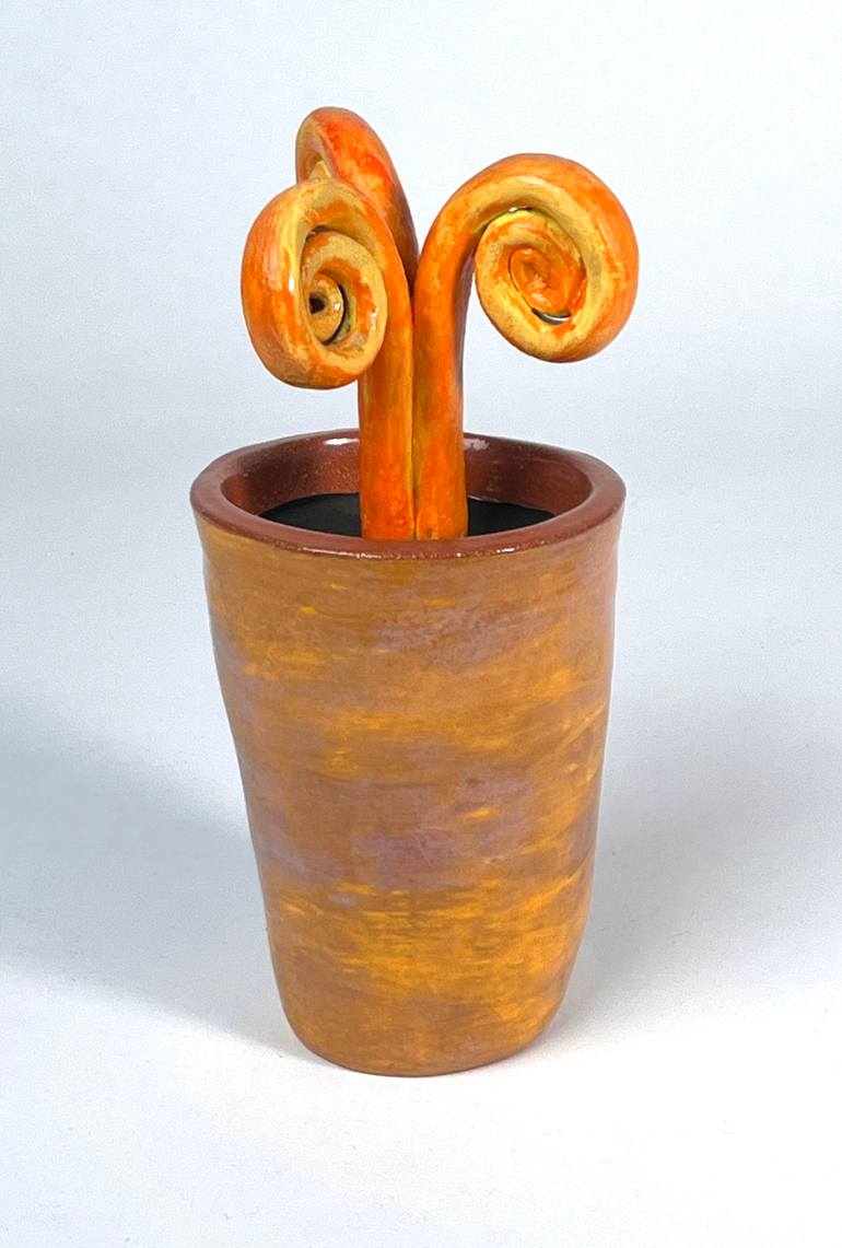SOLD Underglaze and flashe on red stoneware clay. Sculptural succulent plant which is part of an ongoing series. These function best in groupings where a conversation and personification come into play. Contact me for a link to my ceramic work.