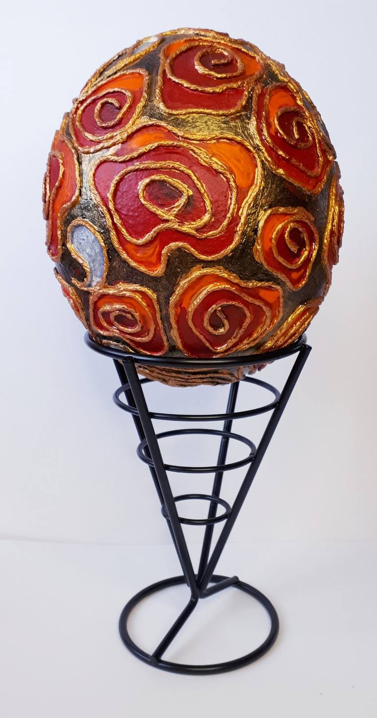 Ostrich egg painted by hand with high-quality professional artistic acrylic paints. When decorating a natural ostrich egg, I used my own technique of creating a relief pattern using thick cotton thread. For strength and durability, I protected the paint layer with artistic acrylic varnish. Size: ...