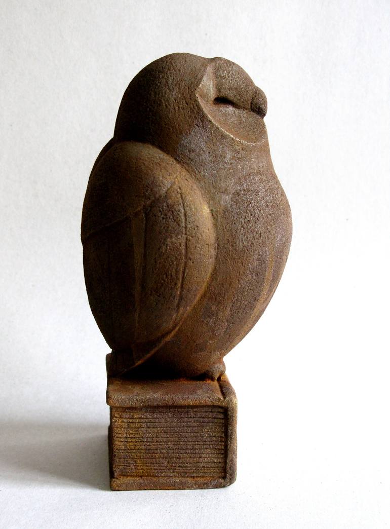 The ,,Owl on the book'' is a symbol of wisdom and knowledge. Material chamotte, iron patina. Hand modelling. One copy.