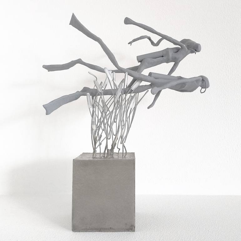 Sculpture made of wire, mouldable paste (not clay) and concrete depicting a pair of divers with their self-contained underwater breathing apparatus, exploring the vast seagrass meadows of the Mediterranean Sea.
