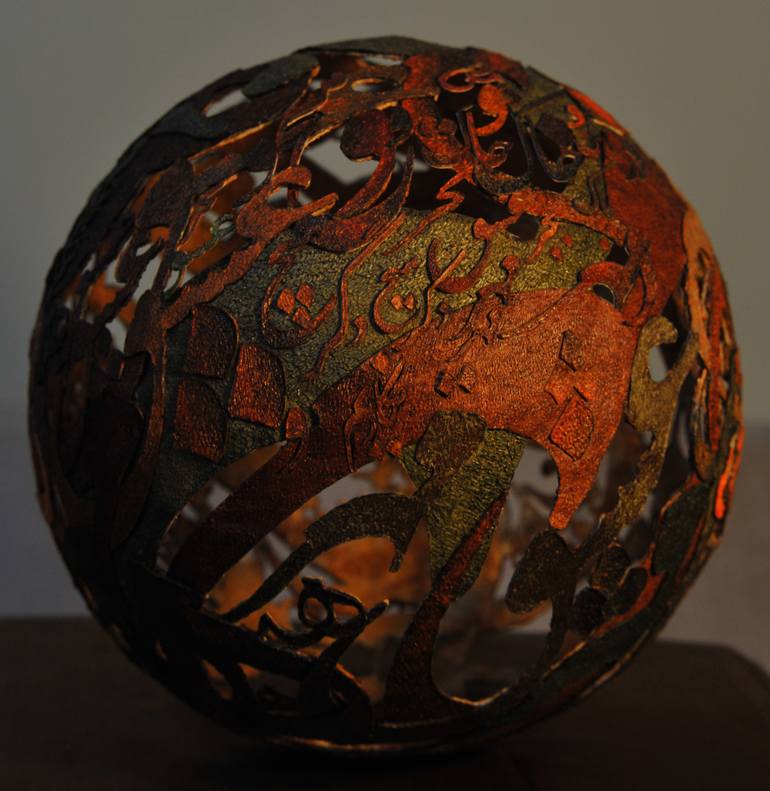 The unique “Azarnegari” technique, Innovated by me, an Iranian Artist, encompasses burning and combining thousands of pieces of colored fabric in multi-layered patterns and was accepted and recognized as a new local art form in 2008 by the Iranian Ministry of Culture, art specialists and professionals. With influences from Iran’s culture and art, and deep interest in traditional illuminated handwriting and miniature patterns, Using my own method, I create 2-D or sculpture artworks. In this style, I never use a pencil or any type of paint but paste small pieces of fabric on top of each other using fire. My designs are based on the mystical and philosophical thought that is strongly connected to nature, philosophy, love, Peace, the universe, and humanity. For more information, you can contact or google Ahad Saadi Azarnegari
