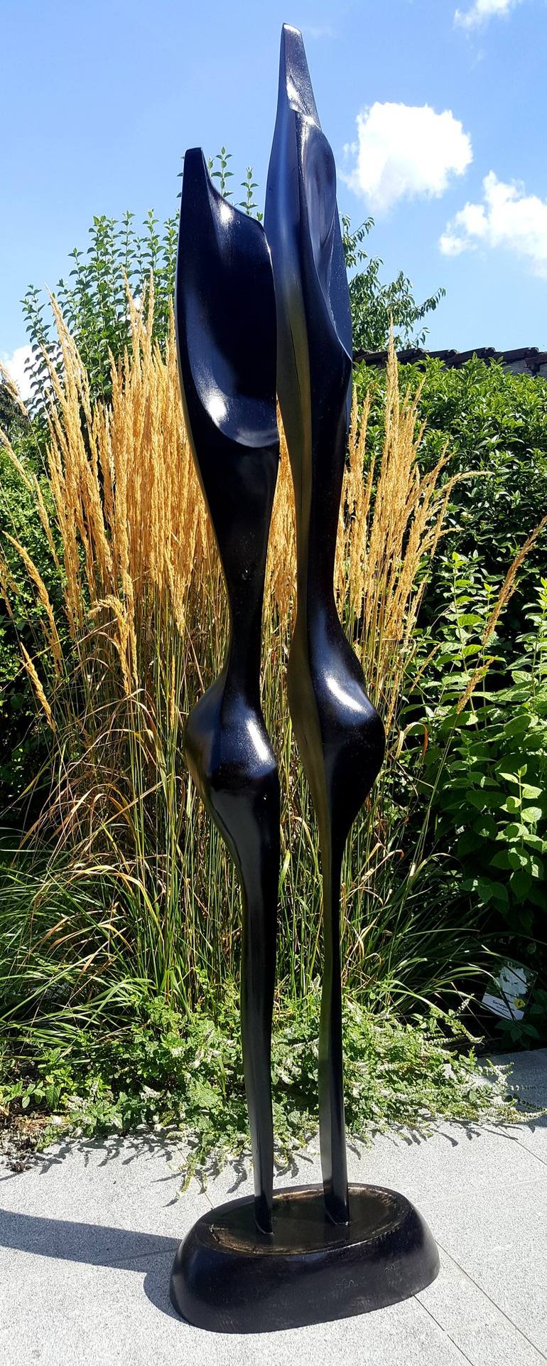wooden sculpture, beech on pine, treated with black shellack and epoxy. Important: my sculptures are for inside placement only. For more details see the video @ hhttps://www.youtube.com/watch?v=EZvuRqOBlt4